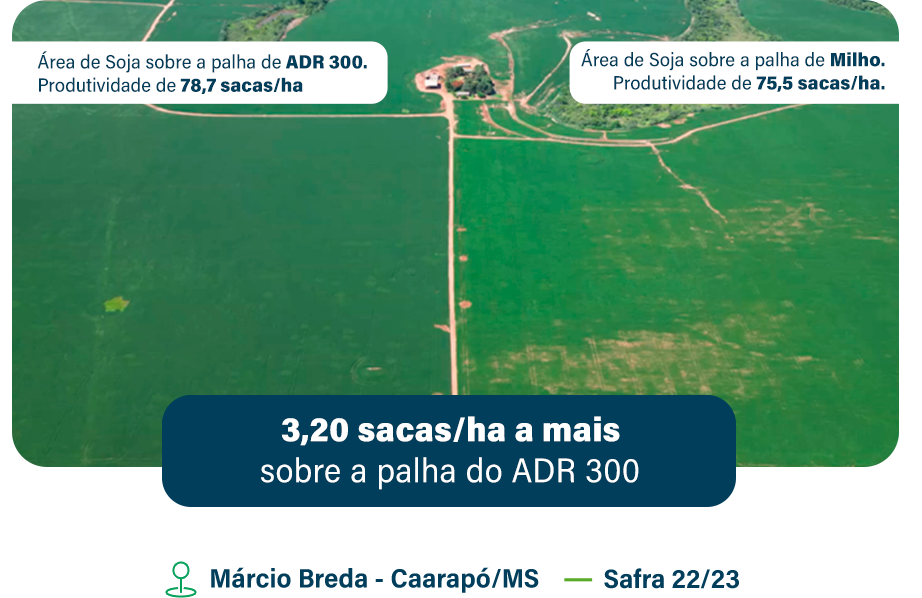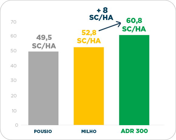 de ADR 300 (78,7 sacas/ha) e milho (75,5 sacas/ha)