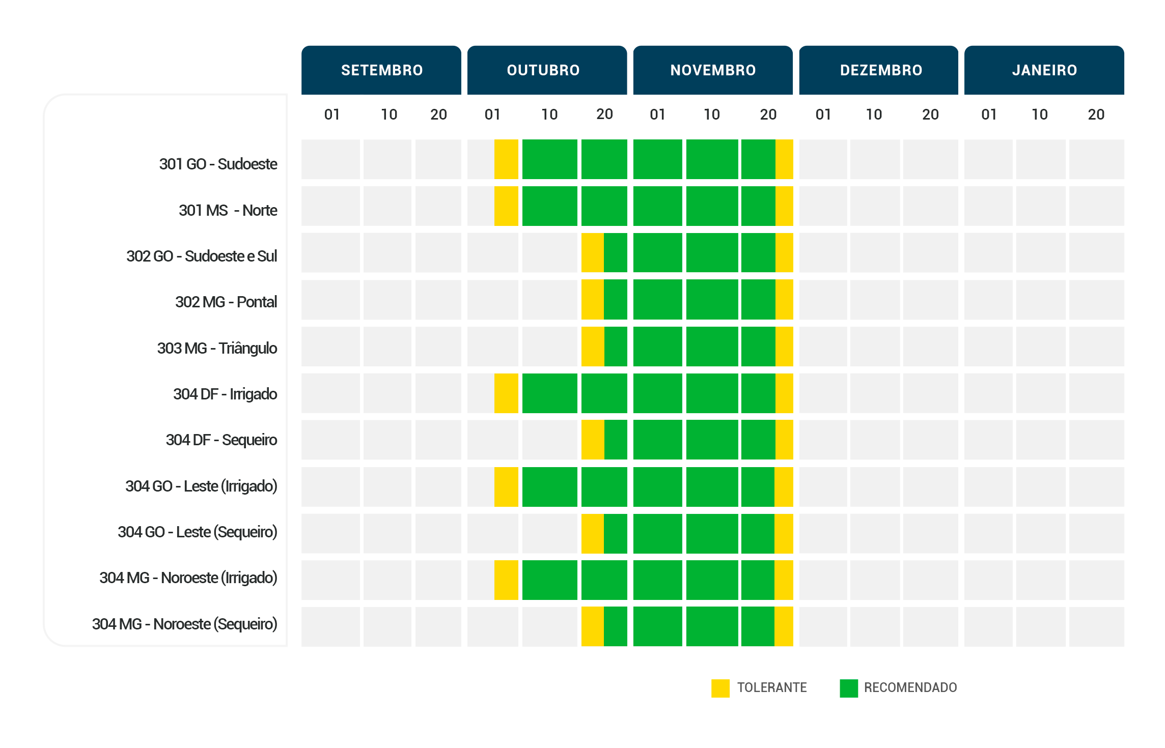 Alto potencial produtivo com precocidade. Adaptada à M3. Cultivar STS com tolerância a herbicidas sulfonilureias.