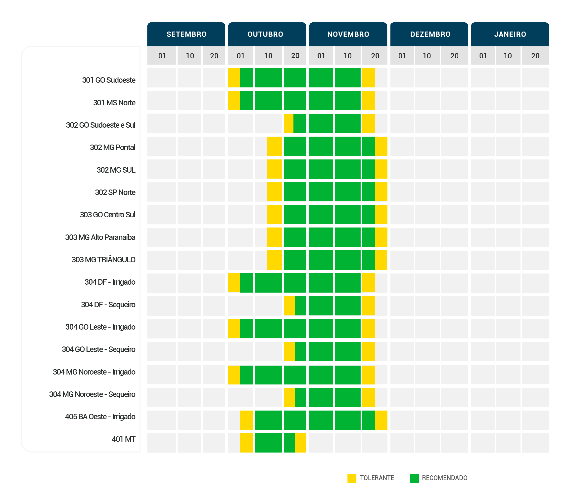 Alto potencial produtivo com precocidade; Cultivar STS com tolerância a herbicidas sulfonilureias.